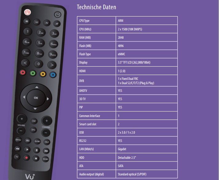 Детальные Хар-ки VU+ Solo 4K: